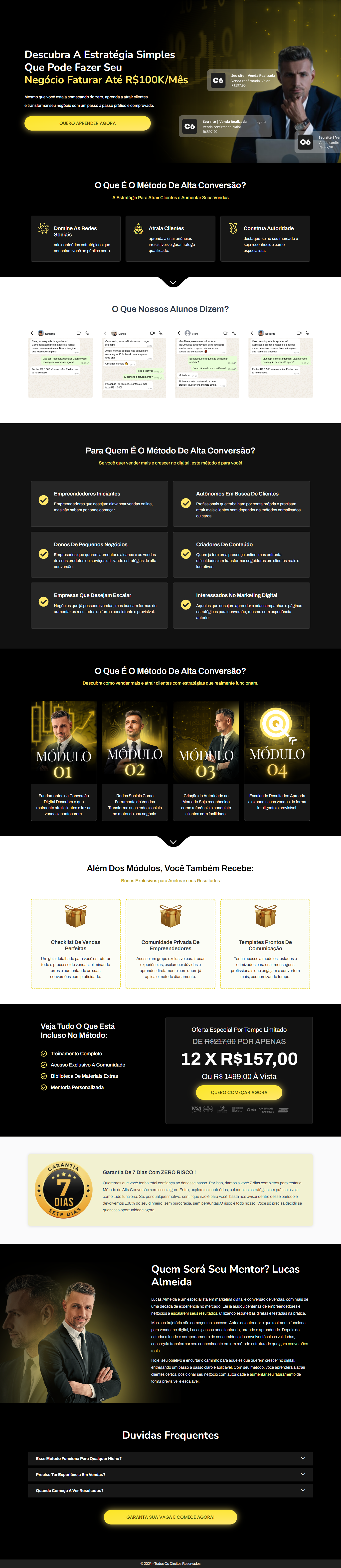 A página decisiva para a conversão. Desenvolvo páginas de vendas persuasivas, com copywriting estratégico, quebra de objeções e gatilhos mentais para impulsionar suas vendas.